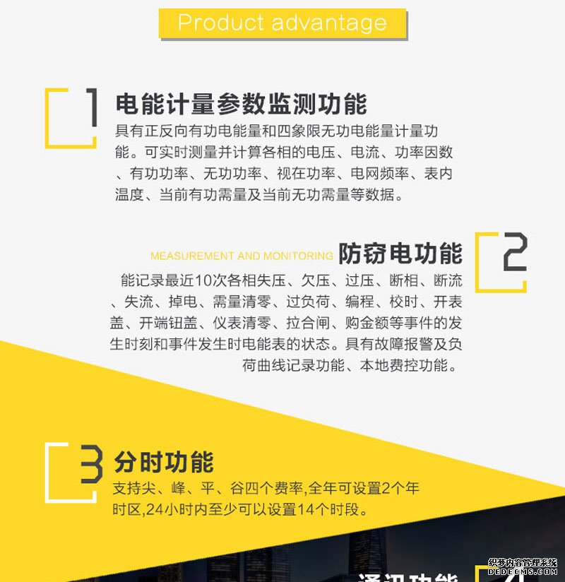 主要功能:有功,功率因素,有功功率,無功功能,視在功率,四象限無功,電壓,電流,事件報警,費控,需量