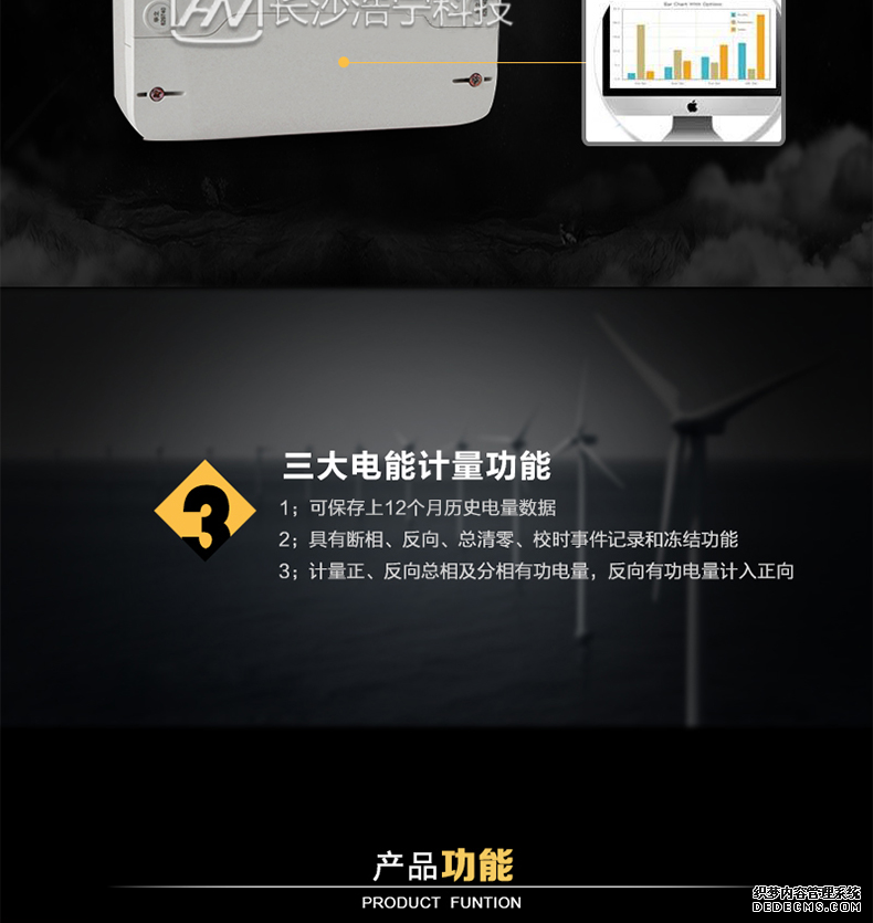 主要功能:有功,有功功率,電壓,電流,事件報警,需量